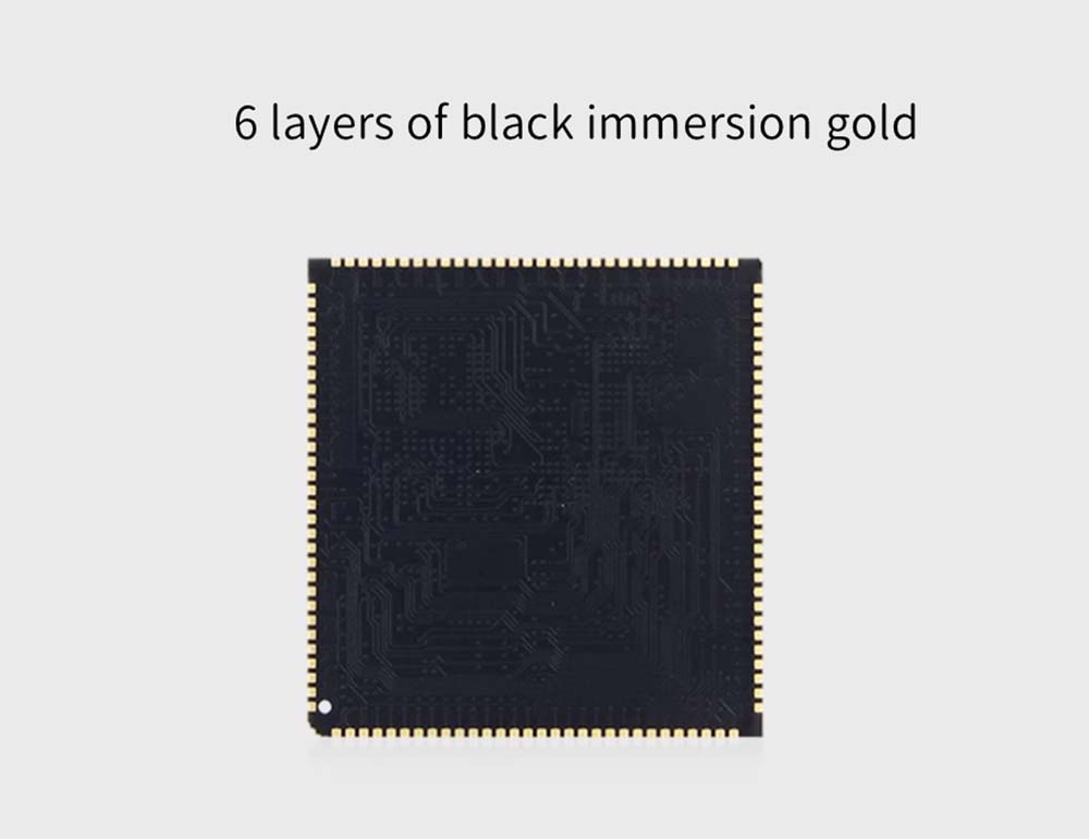 ● Adoptant la conception de l'interface du trou de tampon, la planche n'a que 40 * 40 mm, petite et exquise, avec 6 couches d'or à immersion noire. En plus de DDR, EMMC Bus, LRADC, I0 est entièrement conduit